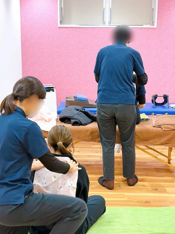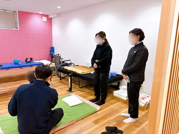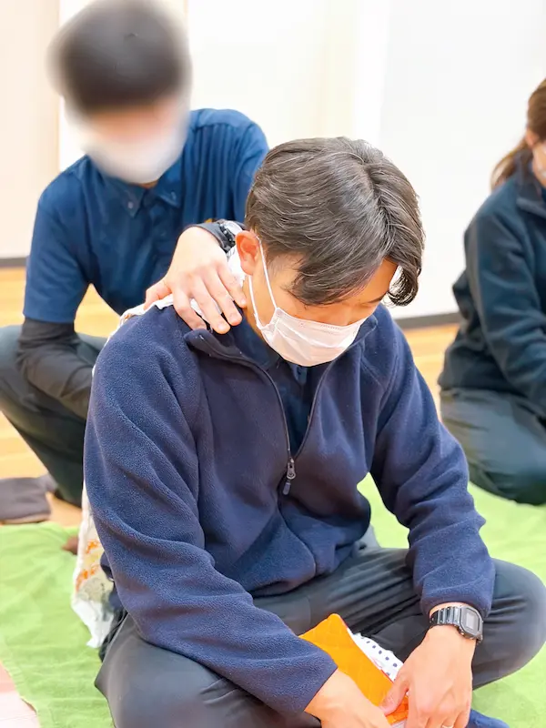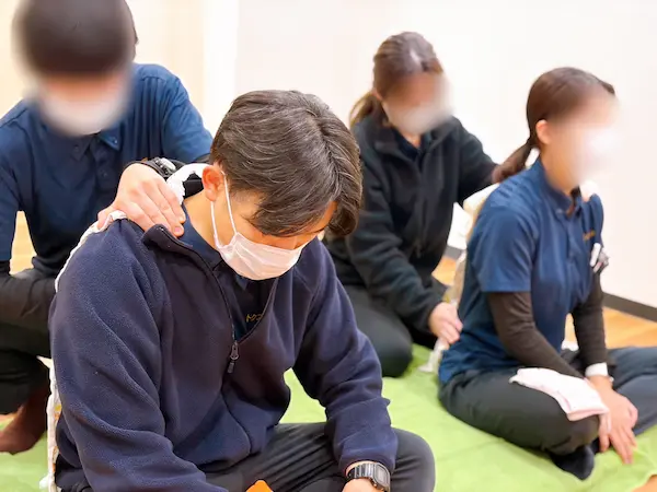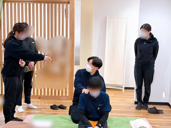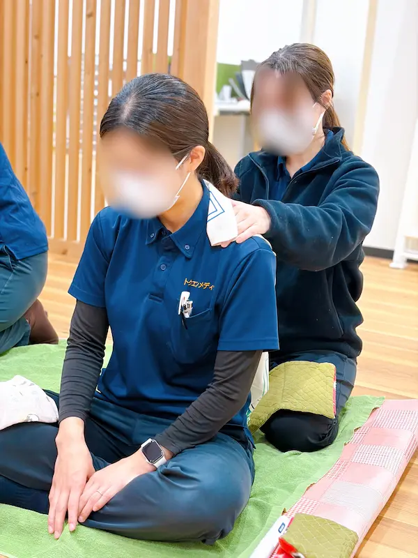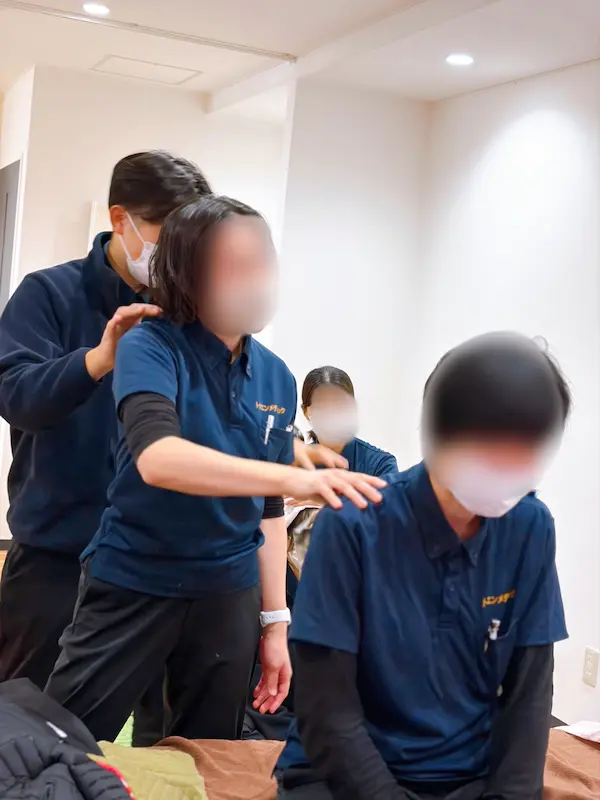 R7.11月26日水曜日のトクエンメディック トクエン訪問鍼灸マッサージのスタッフ達の施術練習の様子です。